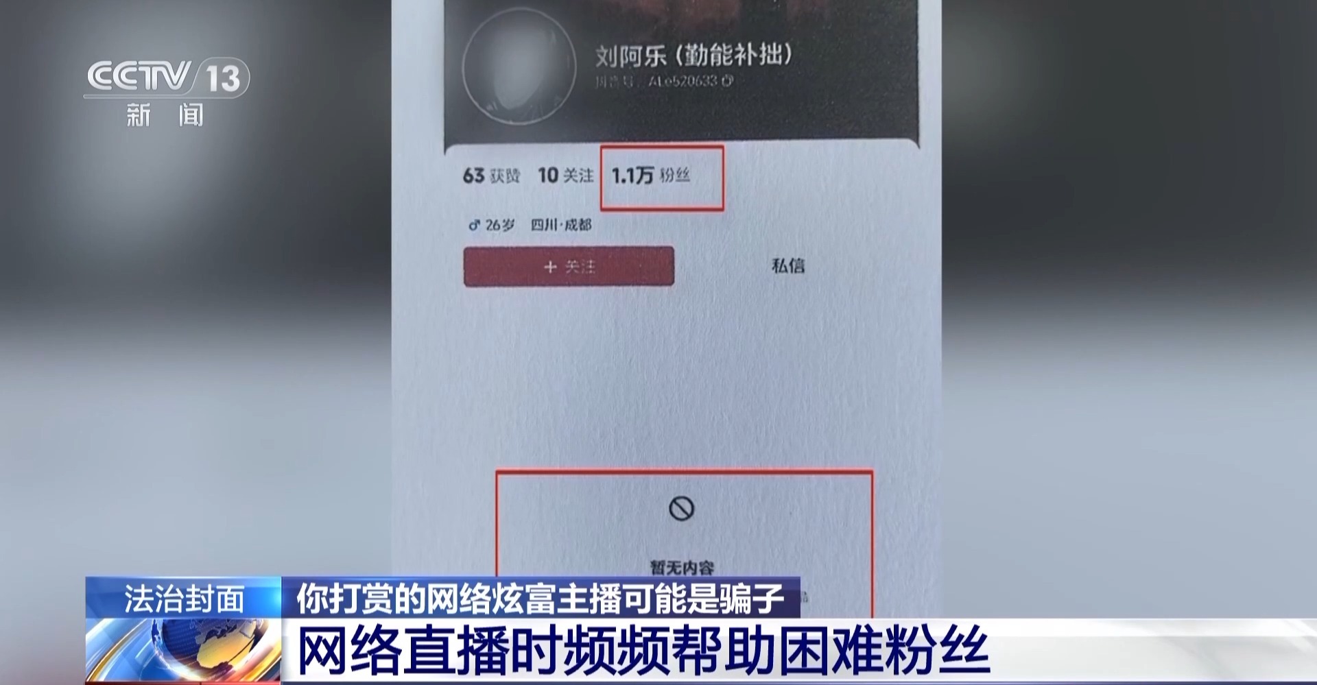 四川成都的李女士在网络上刷到了这样一位网络主播,他家境富裕并且乐善好施,还口口声声宣称,直播只为回馈善良的人,只要给他打赏,他就为身陷困境的粉丝慷慨解囊。不过,当李女士给这名主播刷了直播礼物后,不仅没有获得他的帮助,反而还被拉黑了。