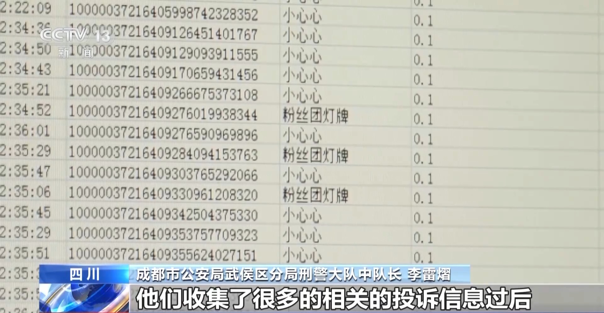 成都市公安局武侯区分局刑警大队中队长 李雷熠:直播平台也接到了大量的群众投诉,他们收集了很多相关投诉信息过后,把相关数据发给了我们。这个案件我们成功和直播平台的数据对上了,在市局的指挥下,对这个案件开始了全方位的研判。